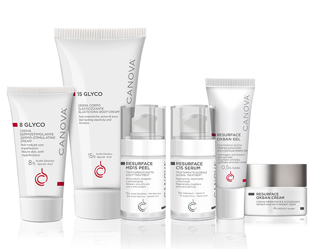 Trattamenti studiati per prevenire e correggere i segni del chrono e photo-ageing. Formule a base di principi attivi – Vitamina C stabilizzata, Acido Mandelico, Gaba, Resvox® Complex – che contrastano i segni dell’invecchiamento cutaneo quali rughe, segni di espressione, colorito spento e non omogeneo, rilassamento cutaneo.